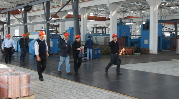 10月22日,上海期貨交易所丁文輝、宜興市人民政府周市長等一行10人訪問江潤銅業(yè),公司總經理駱偉棟熱情接待。 駱總對上海期交所、市領導的再次到來表示熱烈歡迎,詳細介紹了江潤銅業(yè)本年度生產經營的基本狀況,對未來發(fā)展的展望。期交所丁總監(jiān)對江潤銅業(yè)在多年合作中提供的優(yōu)質服務表示感謝。 隨后,來訪客人深入生產車間,參觀SCR-7000銅連鑄連軋車間、復合銅線車間、銅絞線車間。江潤銅業(yè)先進的裝備,整潔的車間,優(yōu)美的廠區(qū)環(huán)境給參觀團一行留下了深刻印象,一致認為符合上海期貨所注冊試驗工廠的標準。